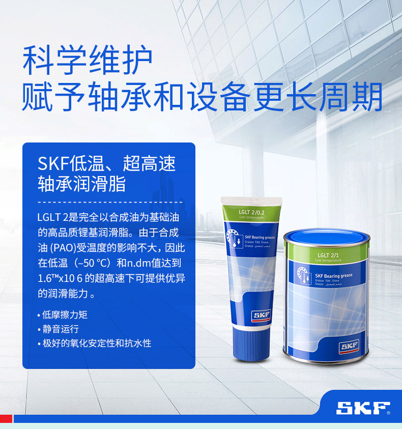 SKF LGLT 2是完全以合成油为基础油的锂基润滑脂。 它的特殊增稠剂技术和低粘度油(PAO)可以实现**的润滑性能。 适合低至–50 °C (–60 °F) 的低温和超高速(n dm值可达到1.6 x 106 )。